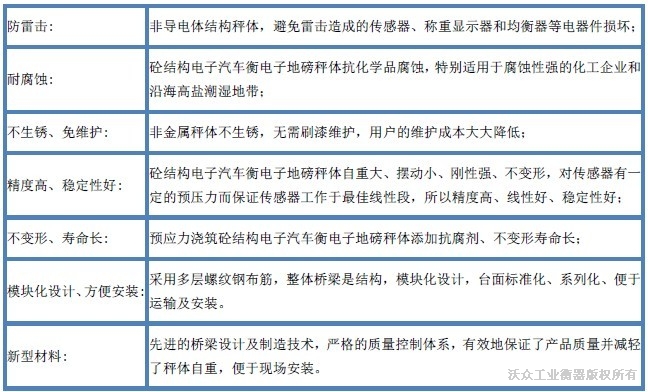 砼結(jié)構(gòu)汽車衡電子地磅俗稱“水泥秤”\“電子地磅”,以混凝土結(jié)構(gòu)臺面取代傳統(tǒng)的鋼結(jié)構(gòu)臺面,防雷擊、耐腐蝕、免維護、使用壽命長,性能穩(wěn)定,從根本上解決了鋼結(jié)構(gòu)汽車衡的一些無法解決的問題,已在國內(nèi)外得到廣泛的應用。從目前世界橋梁技術(shù)的發(fā)展可以預見,以前我們常見的鋼結(jié)構(gòu)橋梁將逐步被砼結(jié)構(gòu)橋梁所取代,高鐵則全部采用砼結(jié)構(gòu)的橋梁和路基,這些都足以證明砼結(jié)構(gòu)的穩(wěn)定性和可靠性。 廣泛應用于工礦企業(yè)、港口碼頭、礦山、冷庫、生鮮交易市場、公正計量站等,特別適用于有化學品腐蝕的化工企業(yè),沿海高鹽潮濕地帶等場所。