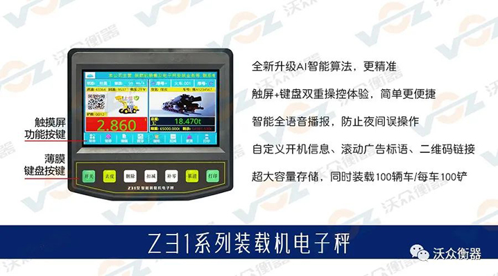 Z20系列裝載機(jī)秤,8寸全彩觸屏、全語(yǔ)音提示,采用先進(jìn)的人工智能算法,稱(chēng)重精度±0.3~0.8%,達(dá)到國(guó)際合法計(jì)量組織OIML的Y(b)精度等級(jí)。